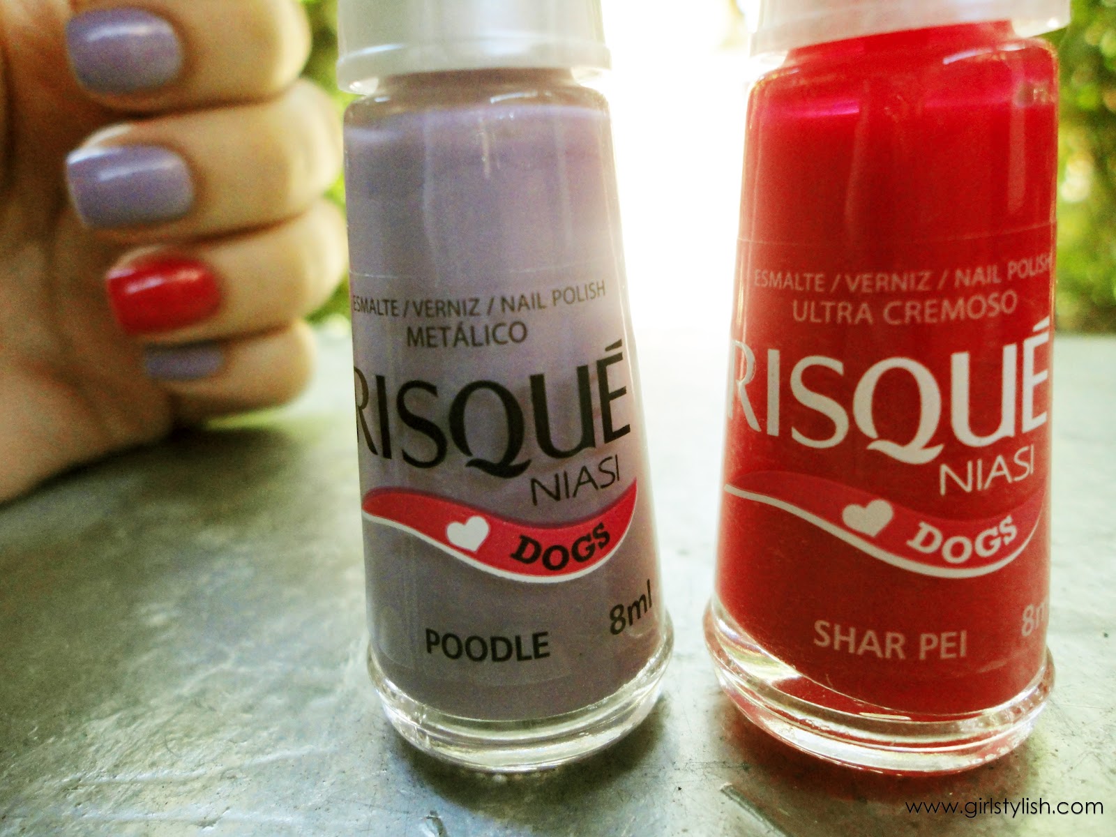 Desta vez quis fazer uma gracinha na unha, e pintar o dedo anelar com uma cor diferente, usei dois esmaltes da coleção DOGS da Risqué. Na unha do dedo anelar usei o SHAR PEI e nas outras unhas usei o POODLE. Gostei do resultado, e você?