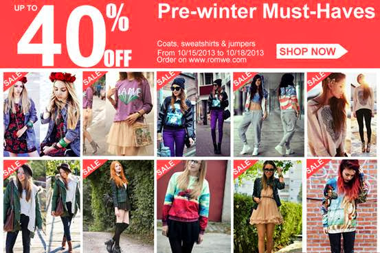 Ansiosas para mais uma promoção da Romwe? Serão 3 dias de promoção, os casacos mais lindos e estilosos com até 40% de desconto! Sei que estamos na primavera e final do ano chega o verão, mas eu por exemplo, adoro comprar casacos fora de época, pois estão bem mais baratos, e melhor ainda é quando sabemos o lugar onde vamos achar os casacos perfeitos, que é na Romwe, rs